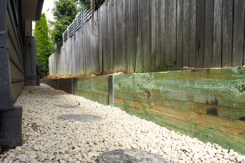 - Retaining Wall & Garden Bed: We built a solid retaining wall to support a new raised garden bed. This not only provided visual appeal but also served a functional purpose – catching and slowing excess water coming from the higher neighbouring property.